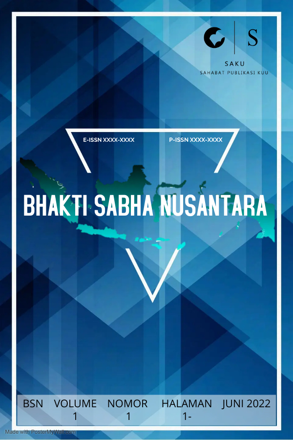 Vol. 1 No. 1 (2022)Jurnal Bhakti Sabha Nusantara dengan nomor ISSN 2962-892X (cetak) dan ISSN 2962-8911 (online) merupakan jurnal multidiplin hasil pengabdian kepada masyarakat yang diterbitkan oleh Sahabat Publikasi Kuu. Jurnal Bhakti Sabha Nusantara merupakan jurnal yang bertaraf nasional yang memiliki fokus utama pada pemberdayaan masyarakat yang berfokus pada bidang promosi dan pendidikan kesehatan, pembangun masyarakat, pemberdayaan masyarakat, dan pengaplikasian hasil riset . Tujuan dari publikasi jurnal ini adalah untuk menyebarluaskan pemikiran konseptual atau ide-ide yang telah dicapai dibidang pengabdian. Volume 1 number 1 2022 adalah issue bulan Januari-Juni 2022.
