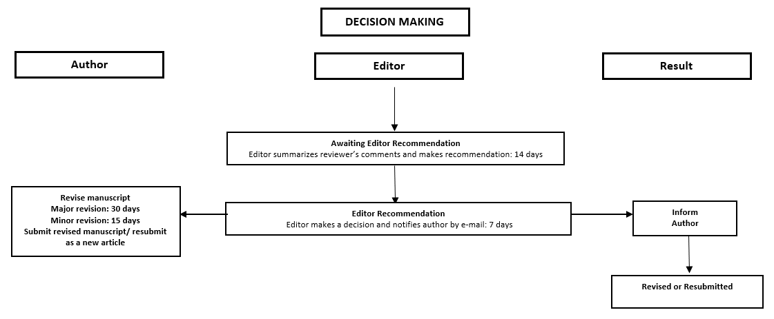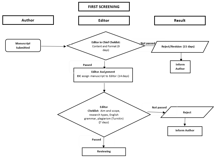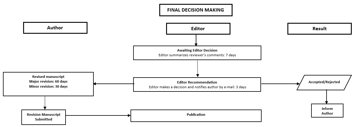 Final decision of articles acceptance will be made by Editors according to reviewers comments. Publication of accepted articles including the sequence of published articles will be made by Editor in Chief by considering sequence of accepted date and geographical distribution of authors as well as thematic issue. Each reviewer is required to take an initial decision about the acceptance or rejection of the manuscript. However, the final decision is made by Editor-in-Chief or Managing Editor. The decision includes: